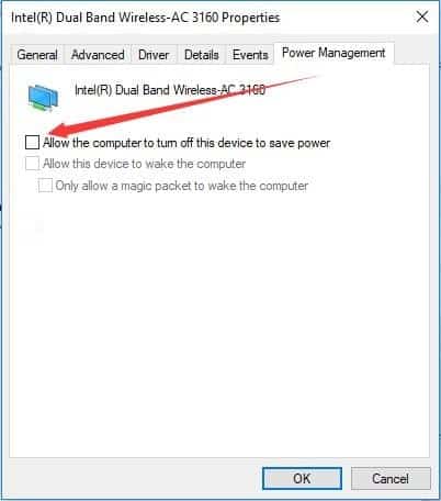 - Haal het vinkje weg bij 'Toestaan dat de computer dit apparaat uitschakelt om energie te besparen'.