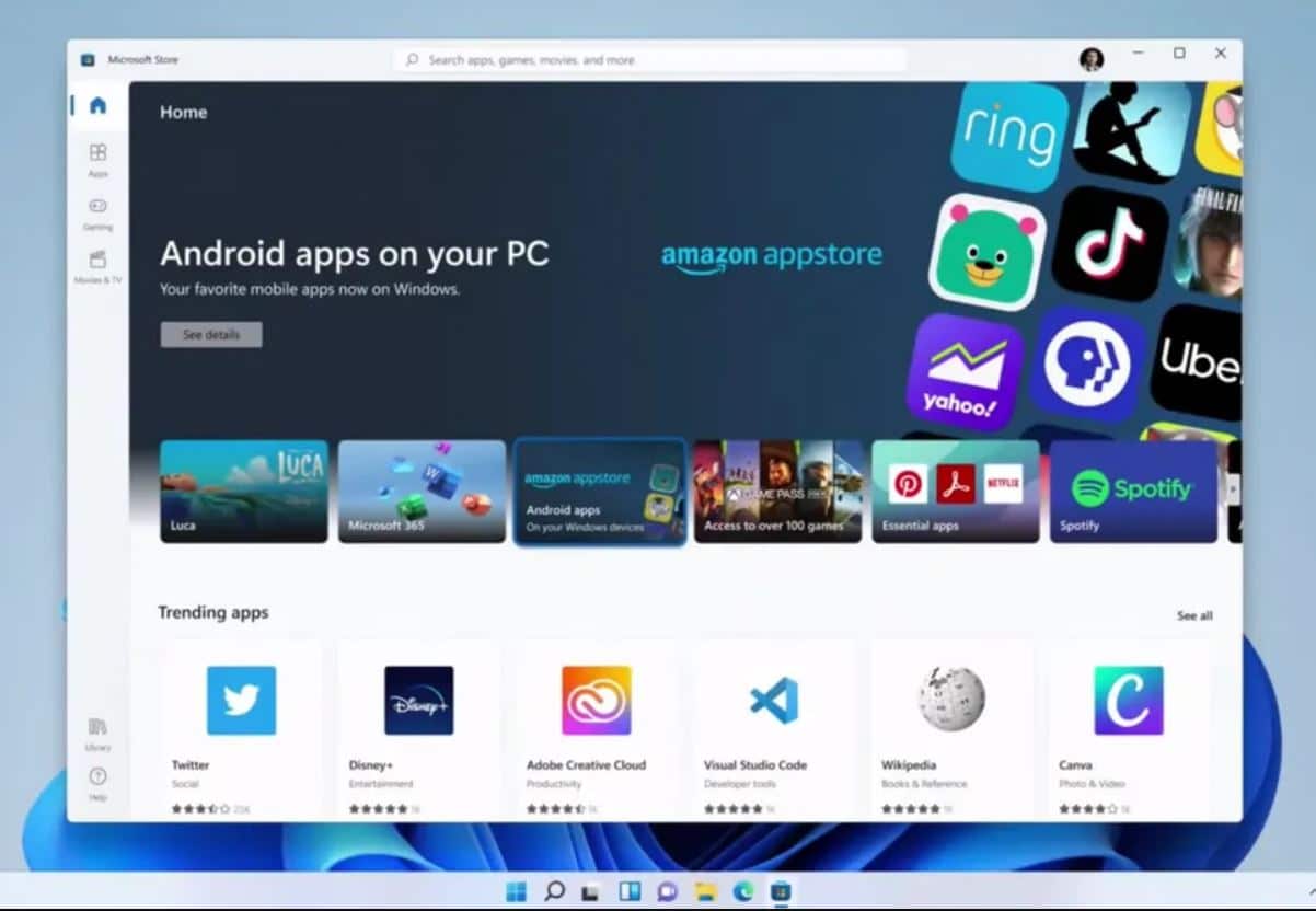 Met het nieuwste Windows 11-besturingssysteem heeft het bedrijf ondersteuning voor Android-apps toegevoegd. Dat betekent dat gebruikers Android-applicaties kunnen downloaden en uitvoeren op hun Windows-computer zonder enige Android-emulator. De Amazon App Store is geïntegreerd met de Windows Store, zodat gebruikers hun favoriete Android-apps op hun pc kunnen installeren en uitvoeren.