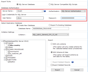 - Klik op Exporteren om de database in afwachting van herstel in SQL Server te herstellen.