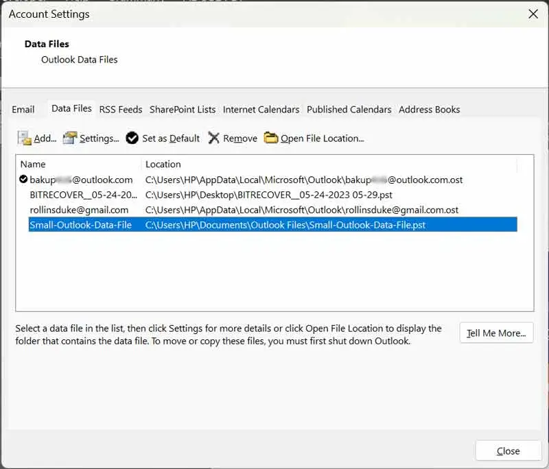 Als het PST-bestand is vergrendeld, vraagt ​​Outlook bij het openen om het wachtwoord voor het Outlook-gegevensbestand. Als u er geen heeft ingesteld, is deze mogelijk beschadigd. Gebruik PST Unlocker om het te ontgrendelen of ScanPST Repair Tool om te herstellen vanaf een back-up als het wachtwoord onbekend is.