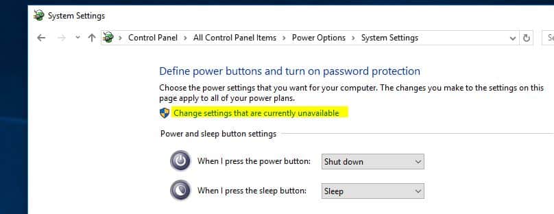 - KlikWijzig instellingen die momenteel niet beschikbaar zijn(indien nodig).