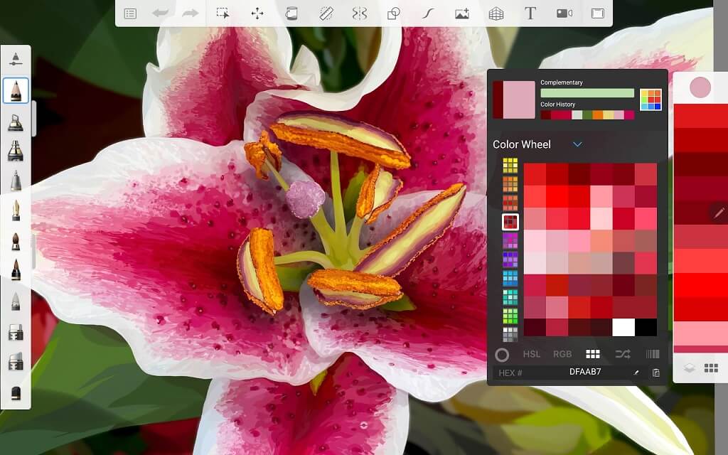 Infinite Painter is ontworpen voor schilders. De app biedt een behoorlijke selectie penselen, gereedschappen en texturen die zijn ontworpen om artistieke gereedschappen uit het echte leven na te bootsen.