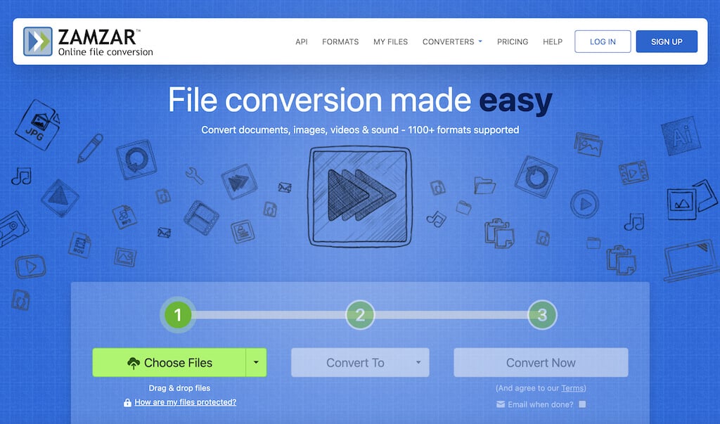 Zamzar is een van de beste online tools voor audioconversie en overtreft louter audioconversie. U kunt deze via uw webbrowser op elk besturingssysteem openen. Zamzar ondersteunt een breed scala aan audiobestandsindelingen voor zowel lokale als online bestanden. Wat vooral nuttig is, is de duidelijke lijst met compatibele formaten voor naadloze conversies, waardoor verwarring wordt verminderd.