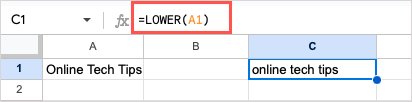 Om de letters in kleine letters te veranderen, gebruikt u de LOWER-functie en deze formule: