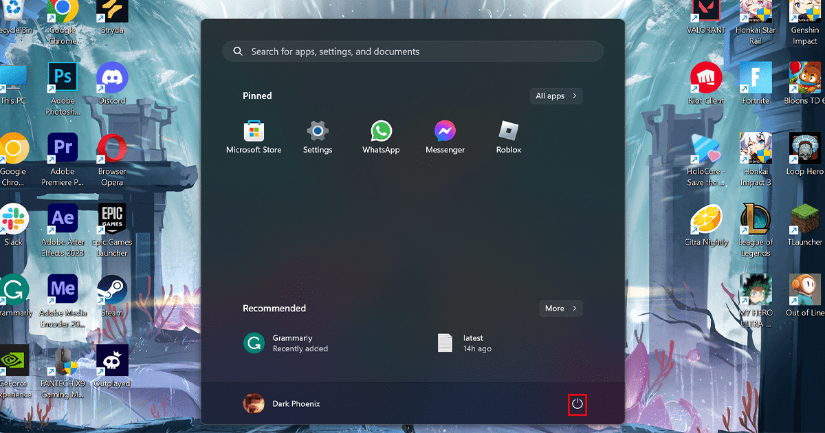 - Houd de knop ingedruktVerschuivingtoets en klik vervolgens op deOpnieuw opstartenknop.