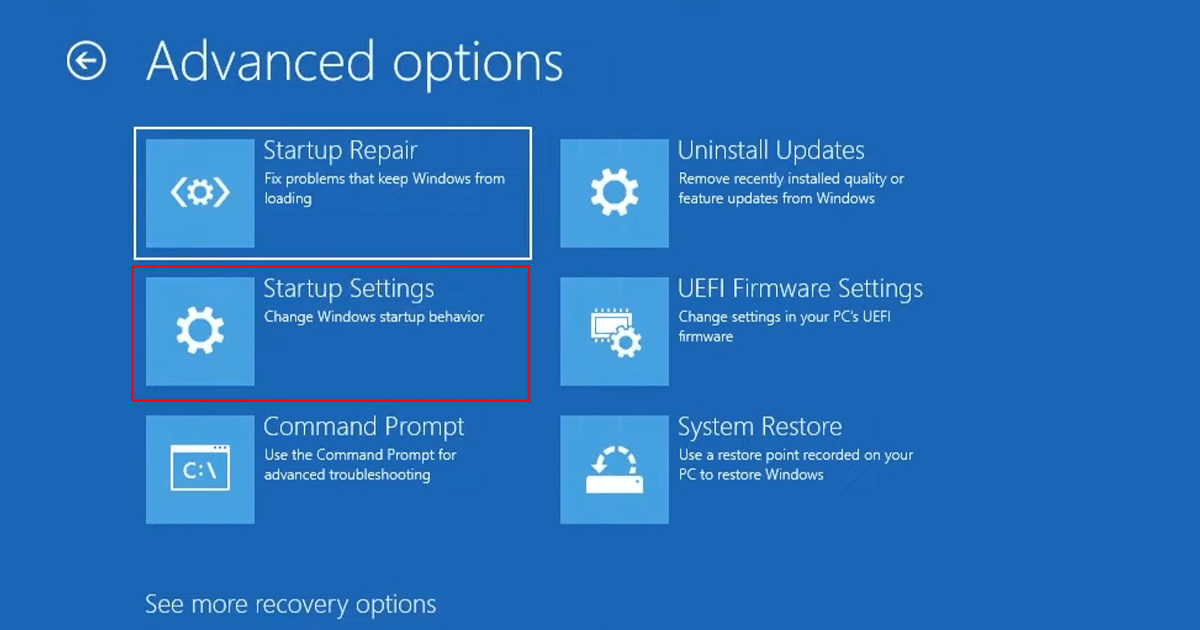 - Klik op deOpstartinstellingenoptie.