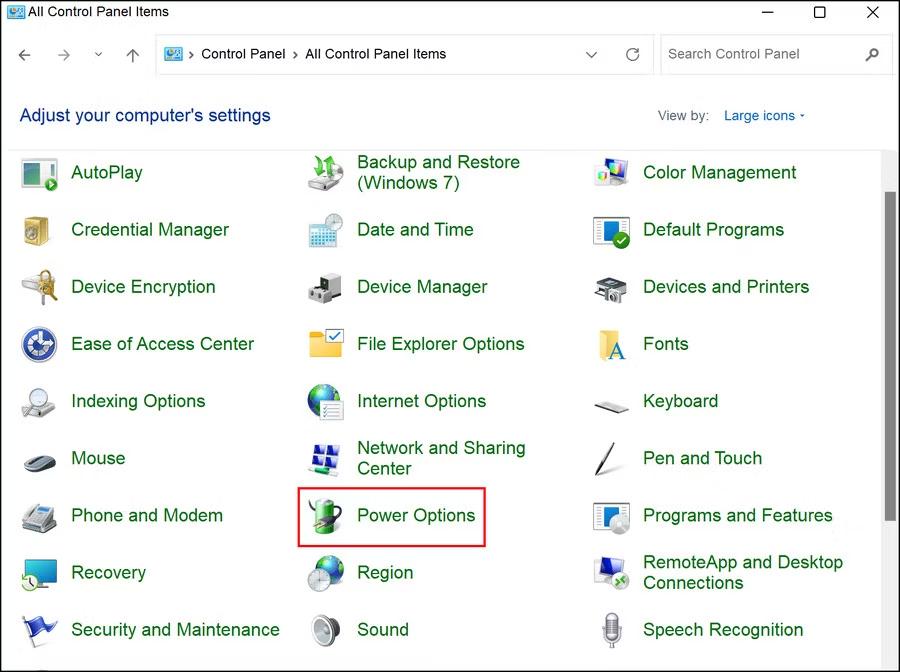 Stap 4:Zoek nu de knop Energiebeheer en klik erop.