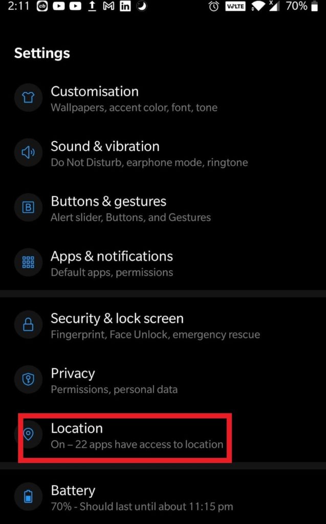 - Open de ‘Instellingen’ van uw smartphone en zoek en tik op ‘Locatie’.