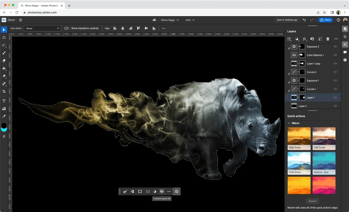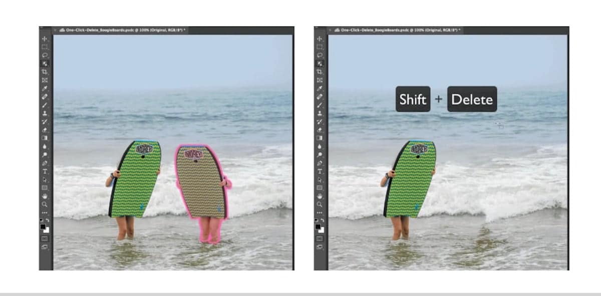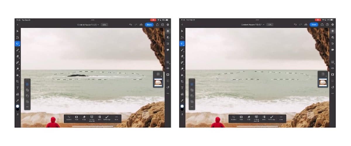 - Inhoudsbewuste vullingFunctie wordt aangedreven door Adobe's Al Tech om gemakkelijk en snel ongewenste of afleidende objecten uit de achtergrond van een afbeelding op te ruimen.