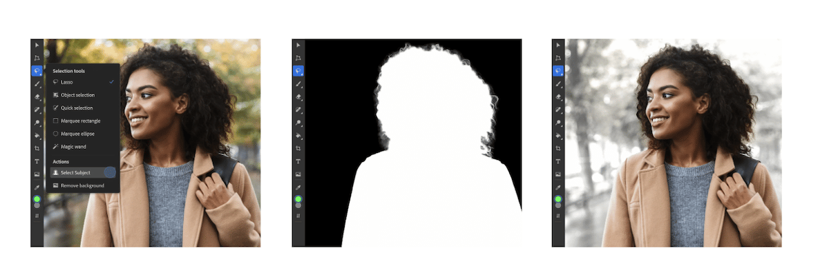 - Verbeterde select onderwerp voor portrettenIdentificeert afbeeldingen van objecten, mensen, dieren en meer om kleine details te selecteren en te verfijnen, perfect.