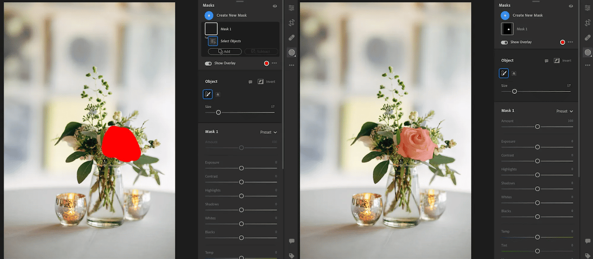 - Selecteer mensen, selecteer objecten en selecteer achtergrondFuncties worden aangedreven door Adobe Sensei (AI en Machine Learning Tech) om snel hoogwaardige maskers voor mensen, objecten en achtergronden te detecteren en te genereren. Beschikbaar op Lightroom voor Win/Mac, Lightroom Classic, ACR.