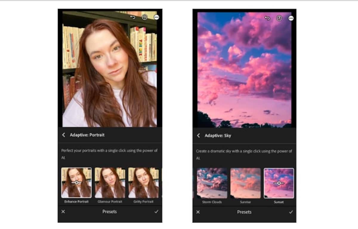- Adaptieve presets voor portrettenOm een doelspecifieke functie zoals ogen, tanden, lucht of het hele portret te verbeteren. Beschikbaar op Lightroom voor Win/Mac, Lightroom Classic, ACR, iOS, iPados