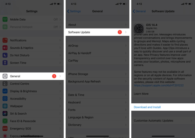 Software-updates repareren verbindingsfouten, fouten en andere problemen die Apple van zijn gebruikers te weten komt. Als geen van de bovenstaande oplossingen voor u heeft gewerkt, update dan uw verbonden apparaat.