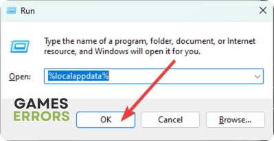 Druk tegelijkertijd op de Windows + R-toetsen om het dialoogvenster Uitvoeren te openen. Typ de volgende opdracht in het tekstvak:%lokaleappdata%en klikOK.