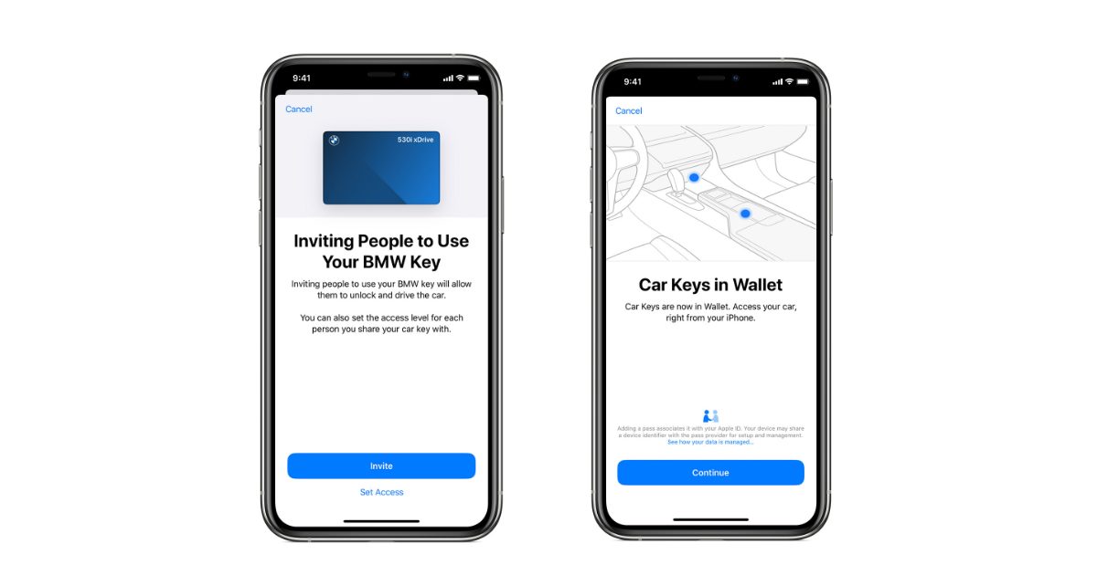 Apple introduceerde op WWDC 2020 Car Keys, een digitale kopie van hun autosleutels die zijn opgeslagen in de Wallet-app op iPhone en Apple Watch. Digitale autosleutels worden aangedreven door NFC-technologie waarmee gebruikers hun auto eenvoudig kunnen vergrendelen, ontgrendelen en starten via iPhone en Apple Watch, waardoor het niet meer nodig is om de fysieke sleutelhanger mee te nemen. Digitale sleutels kunnen ook worden gedeeld met familie of vrienden via berichtenapps zoals Berichten, Mail, WhatsApp en AirDrop en worden beheerd via iCloud.