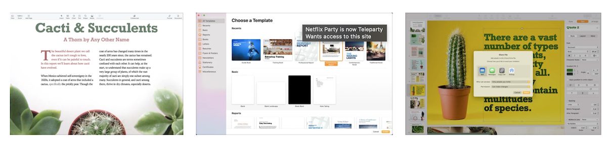 Met de tekstverwerker van Pages voor Mac kunnen gebruikers documenten maken om rapporten, cv's, posters, digitale boeken en meer te maken. De nieuwe Pages 12.0 bevat de volgende functies: