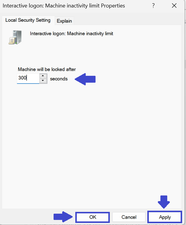 DeInteractief aanmelden: limiet voor inactiviteit van de machineMet de beveiligingsbeleidsinstelling kunt u een hoeveelheid seconden van inactiviteit van de gebruiker opgeven die moet wachten voordat Windows de computer automatisch vergrendelt.
