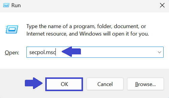 1. Druk op de Windows-toets + R. Typ Secpol.msc en klik op OK.