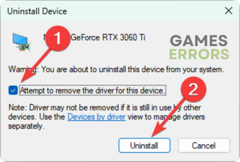 - RekeningProbeer het stuurprogramma voor dit apparaat te verwijderenen klik opVerwijderen.