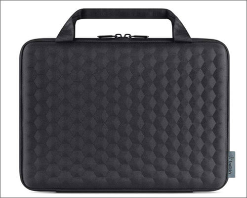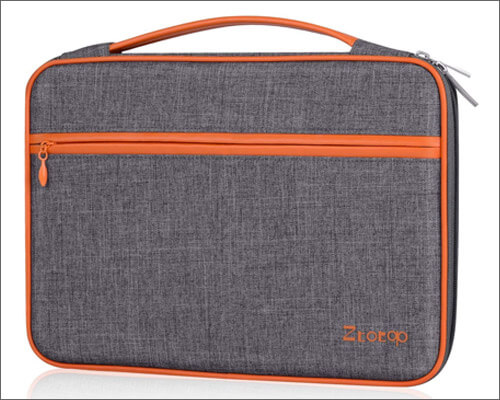 De buitenkant van deze hoes is voorzien van een vulling van neopreenschuim, terwijl de binnenkant is voorzien van een zachte stoffen voering om schokken te verspreiden. Bovendien is er een groot vak zodat uw andere essentiële zaken, zoals pen, document en zelfs iPhone, veilig kunnen worden opgeborgen.
