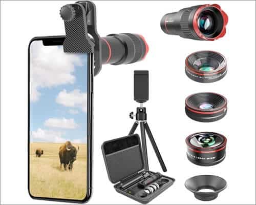 Deze lenskit werkt precies op de camera aan de voor- en achterzijde van uw iPhone 11. Door een behuizing van een aluminiumlegering te gebruiken, kunt u de objectiefring draaien en de focus fixeren.