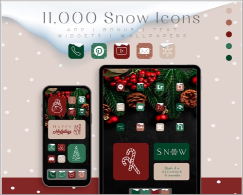 Je kunt je apparaat zelfs nog verder aanpassen met acht widgetachtergronden en vijf kerst-iPhone-achtergronden in dit pakket. Deze achtergronden en widgetachtergronden zijn ontworpen om samen te gaan met de app-pictogrammen, waardoor een samenhangende en elegante look voor uw iPhone ontstaat.