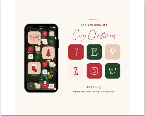 Met prachtig vormgegeven en ingewikkeld ontworpen pictogrammen is de gezellige kerstpictogramset een van de beste keuzes op de markt van vandaag. Van prachtige kerstbomen tot charmante sneeuwmannen, deze iconenset zal de diepte en visuele aantrekkingskracht van je iPhone vergroten.