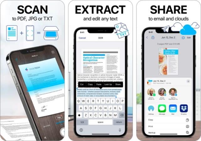 QuickScan is een alles-in-één app voor het scannen van documenten. U kunt documenten scannen met een iPhone-camera of bestaande PDF's of afbeeldingen in de app importeren. Bovendien kunt u een functie als Live Text gebruiken. dat wil zeggen, gebruik real-time OCR en herken de tekst in de PDF of afbeeldingen.