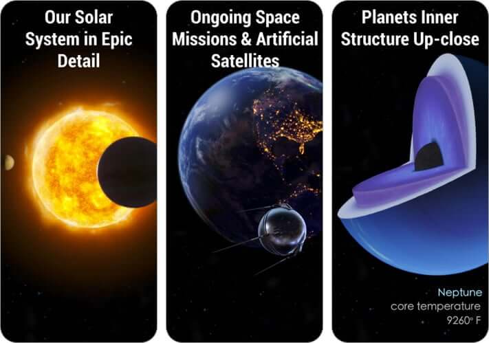 Als je uit nieuwsgierigheid het zonnestelsel wilt verkennen, raad ik je aan Solar Walk 2 te bekijken. De app beschikt over een gedetailleerd model van het zonnestelsel met opvallende weergaven van de belangrijke componenten, waaronder planeten, satellieten, planetaire atmosferen, de maan en de zon.