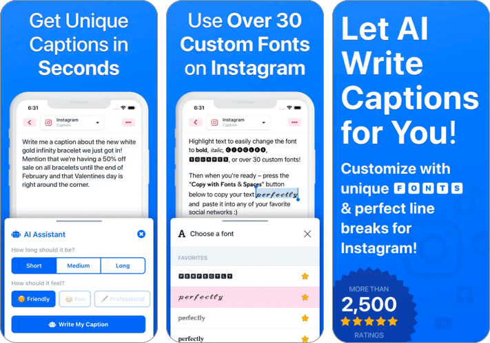 Caption Writer voor Instagram kan vrijwel concurreren met de vorige. Er zijn zoveel dingen die deze app onderscheiden van andere. De perfecte spaties, de 2000 en meer lettertypen en symbolen, en de miljoenen hashtags zijn om er maar een paar te noemen.