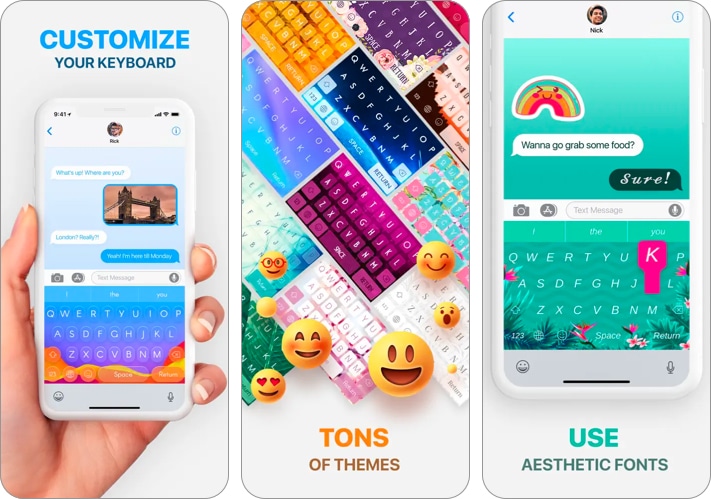 Kleurentoetsenbord richt zich, zoals de naam al doet vermoeden, op een meer kleurrijke benadering. Het heeft een heleboel kant-en-klare thema's, maar je kunt ook een persoonlijk thema voor jezelf maken. Er is ondersteuning voor stijlvolle en decoratieve lettertypen waarmee u opvalt tussen uw vrienden of een groepschat.