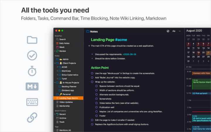De gebruikersinterface van NotePlan herinnert mogelijk aan andere apps die u mogelijk bent tegengekomen. Als we voorbij deze overeenkomsten in de gebruikersinterface komen, is NotePlan een app die kan worden beschouwd als een vervanging voor een agenda en een app voor taakbeheer, aangezien deze app erin is ingebouwd.