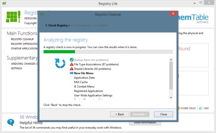 Registry Life is een van de gemakkelijkste programma's om te gebruiken, omdat het een eigen wizard bevat die u helpt bij het hele proces van het opschonen van het register. Op deze manier zal dit proces eenvoudiger en sneller verlopen, omdat u niet de exacte knoppen en opties van het programma hoeft te kennen om het efficiënt te kunnen gebruiken.