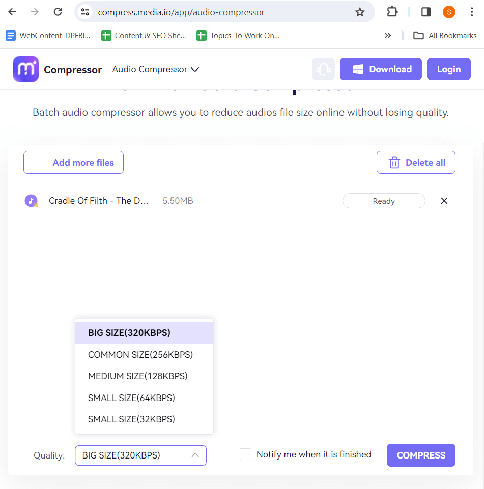 3. Grote audiobestanden online comprimeren (werkt op alle apparaten – Android/ iOS/ Mac/ Windows)