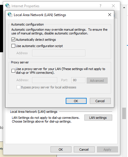 5. Haal het vinkje weg“Gebruik een proxyserver voor uw LAN.”