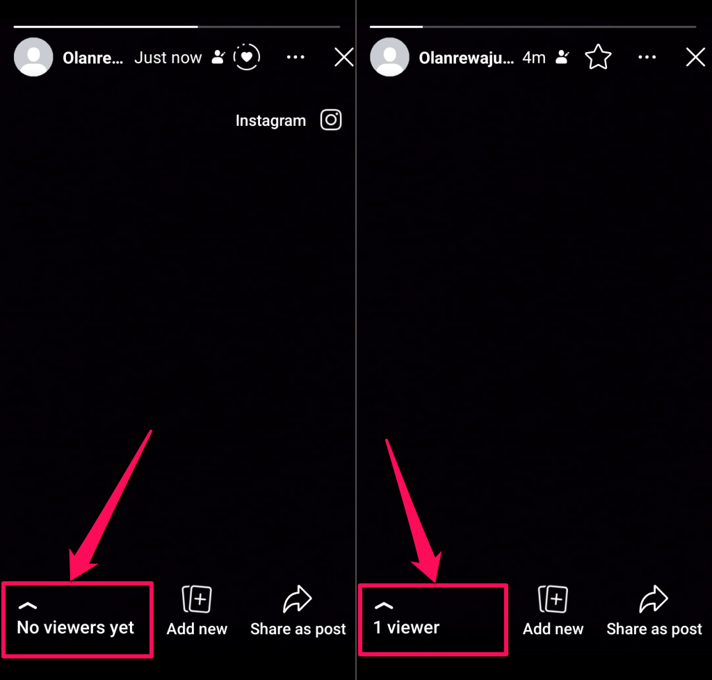 - Je zou een weergaveteller in de linkerbenedenhoek van de verhaalpagina/-scherm moeten zien. Als niemand je verhaal heeft bekeken, zie je het bericht 'Nog geen kijkers'. Tik op het aantal weergaven of veeg omhoog over het scherm om iedereen te zien die het verhaal heeft bekeken.
