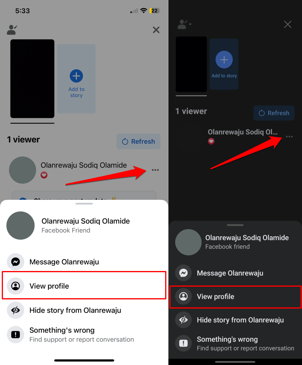 - Open je verhaal in de Facebook-app en tik opMenupictogram/profielfotoin de rechterbovenhoek (Android) of rechtsonder (iOS).