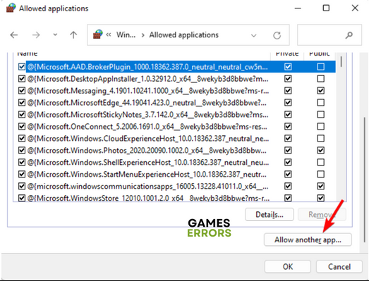 - Als u het spel niet in de lijst vindt, drukt u op deEen andere app toestaanknop onderaan.