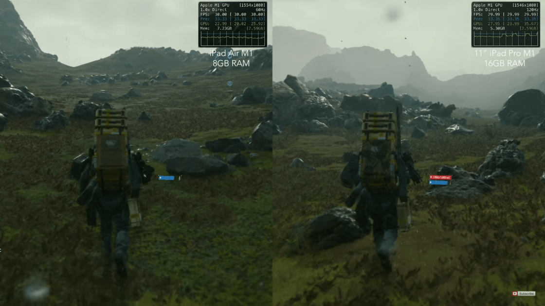 Het is indrukwekkend dat de M1/M2 iPad een veeleisende AAA-titel als Death Stranding aankan. De game draait soepel met overwegend stabiele framesnelheden, wat een verrassend goede console-achtige ervaring op een tablet oplevert.