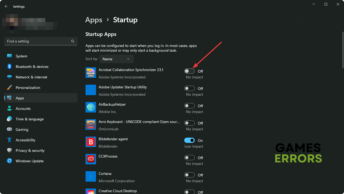 - Schakel de schakelaar uit naast de opstartitems die u wilt uitschakelen.