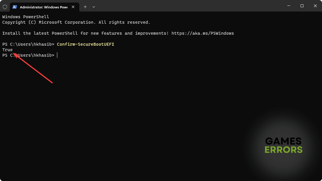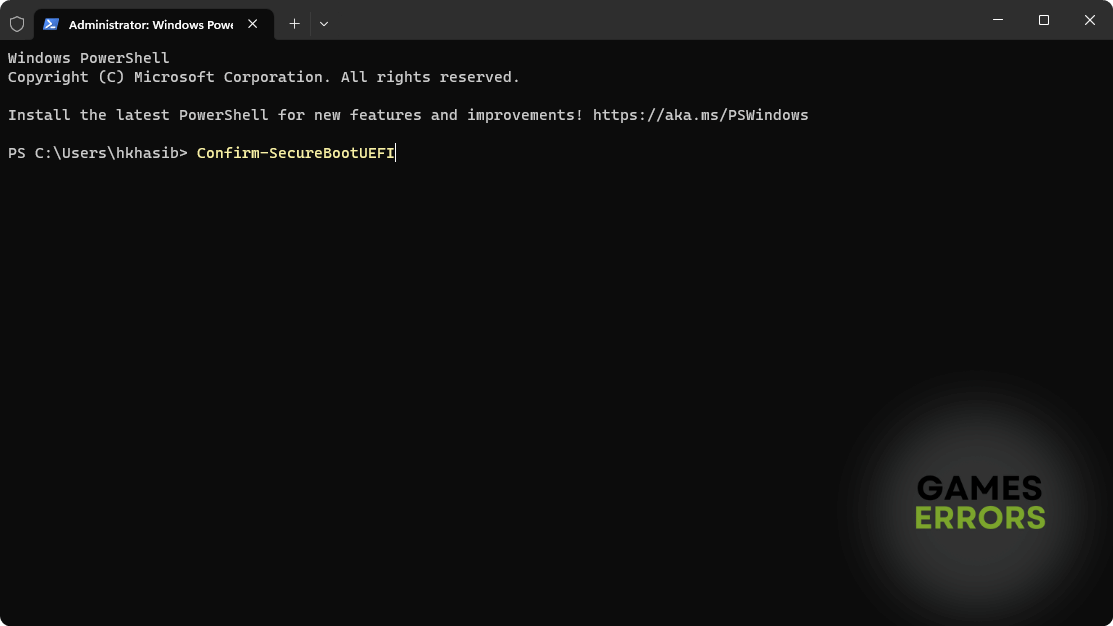 - Typ nu Confirm-SecureBootUEFI en druk op Enter om het uit te voeren.