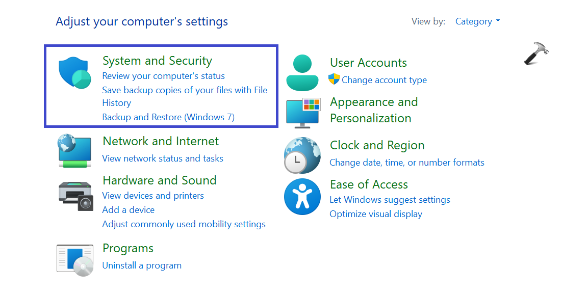 1. Open het Configuratiescherm. Selecteer de “Systeem en beveiligingoptie.