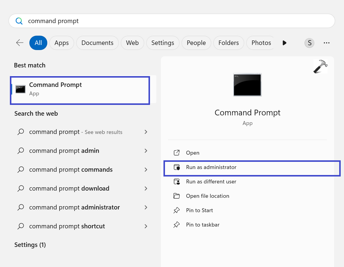 1. Open de opdrachtprompt en voer het uit als beheerder.
