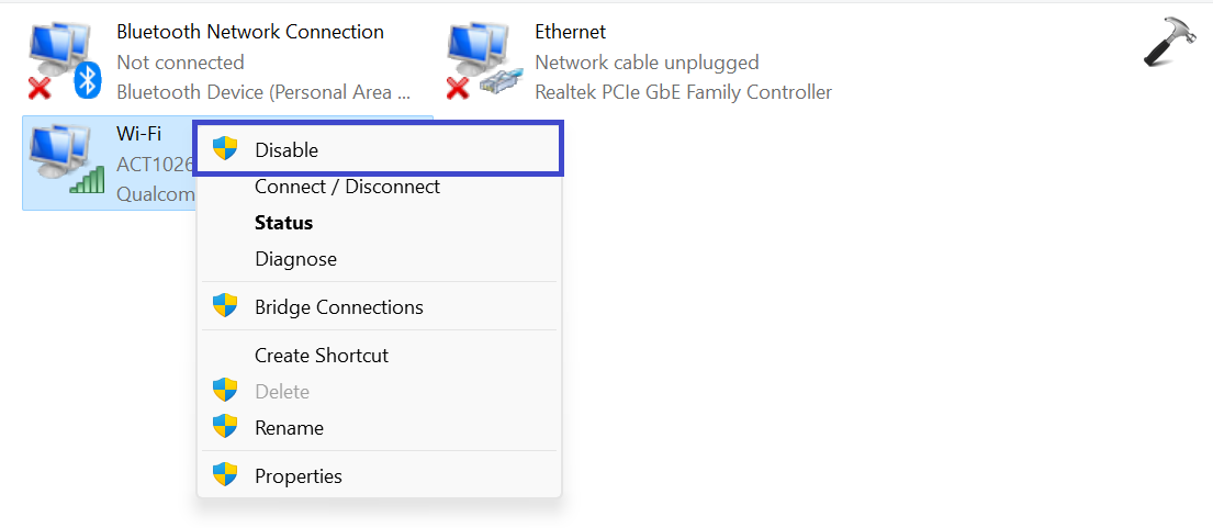 2. Klik met de rechtermuisknop op de Wi-Fi-adapter en klik op “Uitzetten“.