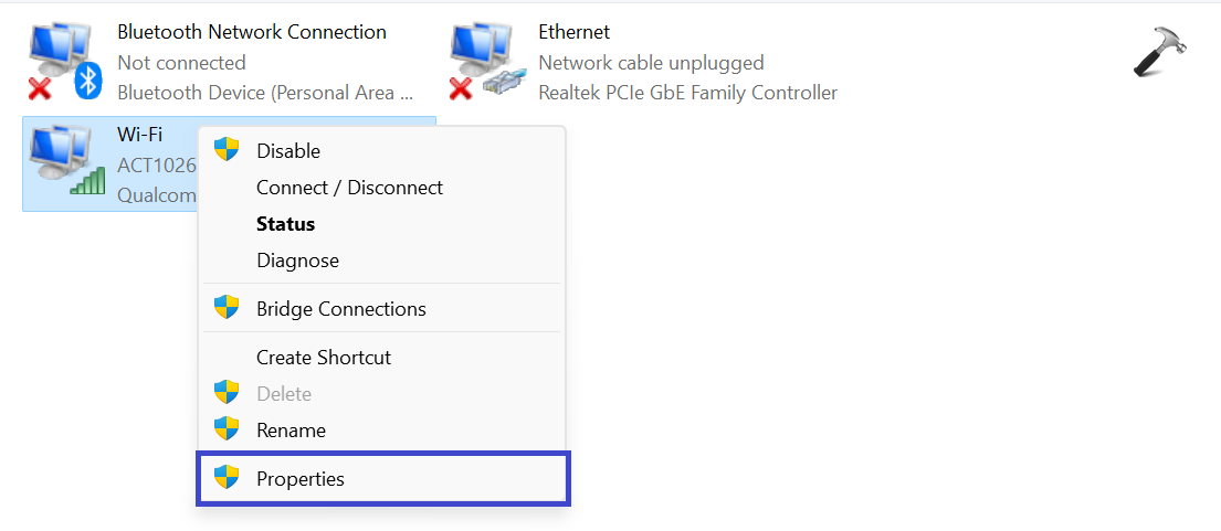 3. Klik nu met de rechtermuisknop op “Wi-Fi-adapter' en selecteer 'Eigenschappen“.