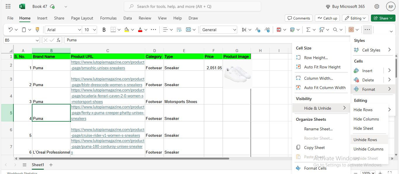 Stap 3-Selecteer ten slotte Rijen/kolommen zichtbaar maken om de vereiste rijen of kolommen zichtbaar te maken.