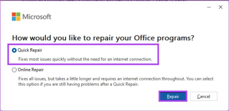 Installatie van de nieuwste Windows-updates kan ook helpen om het probleem op te lossen. Zo moet de pc beschikken over de nieuwste versies van zowel Microsoft Office als Windows. Maar als het probleem zich blijft voordoen, probeer dan de Office-installatie te repareren.
