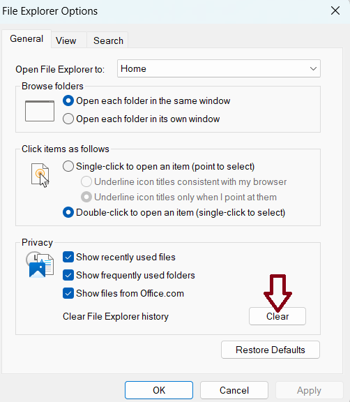 3. Klik op de knop Wissen in het gedeelte Privacy.