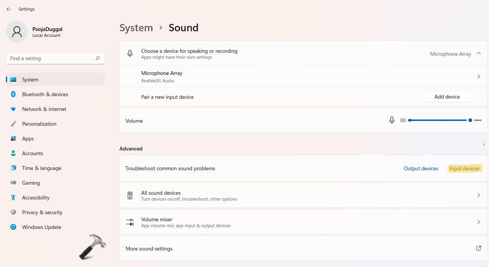 2.Klik vervolgens op deInvoerapparatenoptie aanwezig onder deVeelvoorkomende geluidsproblemen oplossensectie.