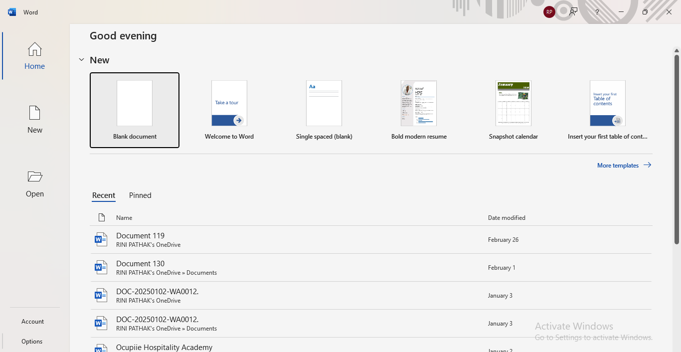 Stap 1-Ga eerst naar een willekeurige Office-toepassing en daarna naar Accounts.